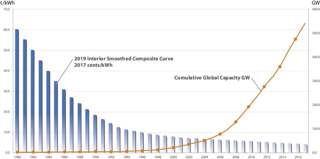 From a business perspective, at just over 51 gigawatts of new wind installations in 2018 (7) and more than half a terawatt of operating capacity, the global investment in wind energy is now ~$100 billion (U.S. dollars) per annum. The energy consultant DNV GL predicts that wind energy demand and the scale of deployment will grow by a factor of 10 by 2050, bringing the industry to the trillion-dollar scale (6) and positioning wind as one of the primary sources of the world’s electricity generation.